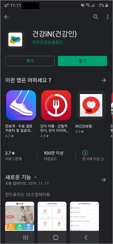 플레이스토어에서 [건강인]을 검색하고 나오는 프로그램을 선택하여 설치합니다. 이후 실행하여 공인인증 로그인을 하면 검진 대상자 조회를 간단하게 할 수 있습니다.