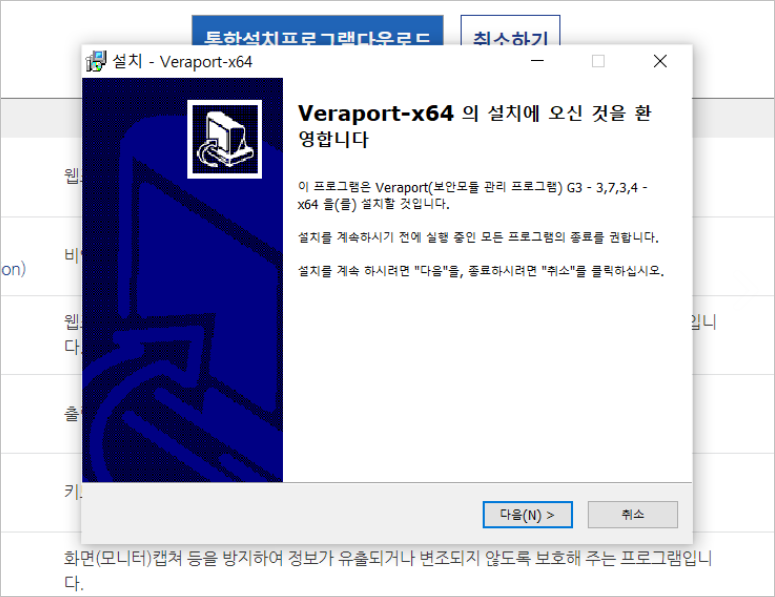 ④ 보안프로그램 설치창의 가장 상단에 있는 [통합설치프로그램다운로드]를 선택하여 전부 설치해 줍니다.