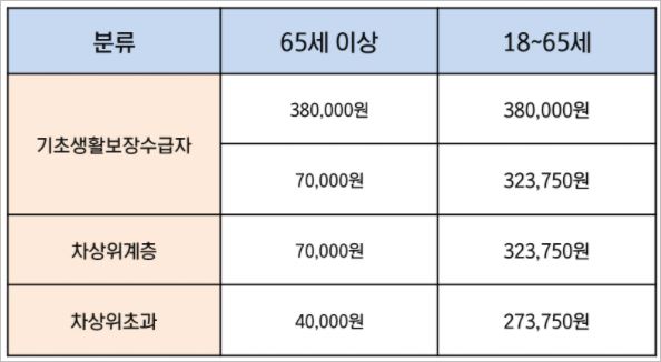 2020년 기준, 1인가구는 122만원, 2인가구(부부)는 195만2천원 이하를 지급대상으로 합니다. 소득 수준이 갑자기 크게 상향되었거나 불노소득이 급격히 증가했을 경우, 자격이 안 될 수 있으니 체킹을 해보아야 합니다.