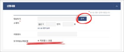 ⑦ 대상토지를 입력한 후에 토지이용규제에 관련된 내용을 포함할지 미포함할지 선택하시면 됩니다. 만약 이부분이 뭔지 잘 모르겠거나 헷갈리신다면 '포함'을 선택하시면 됩니다.