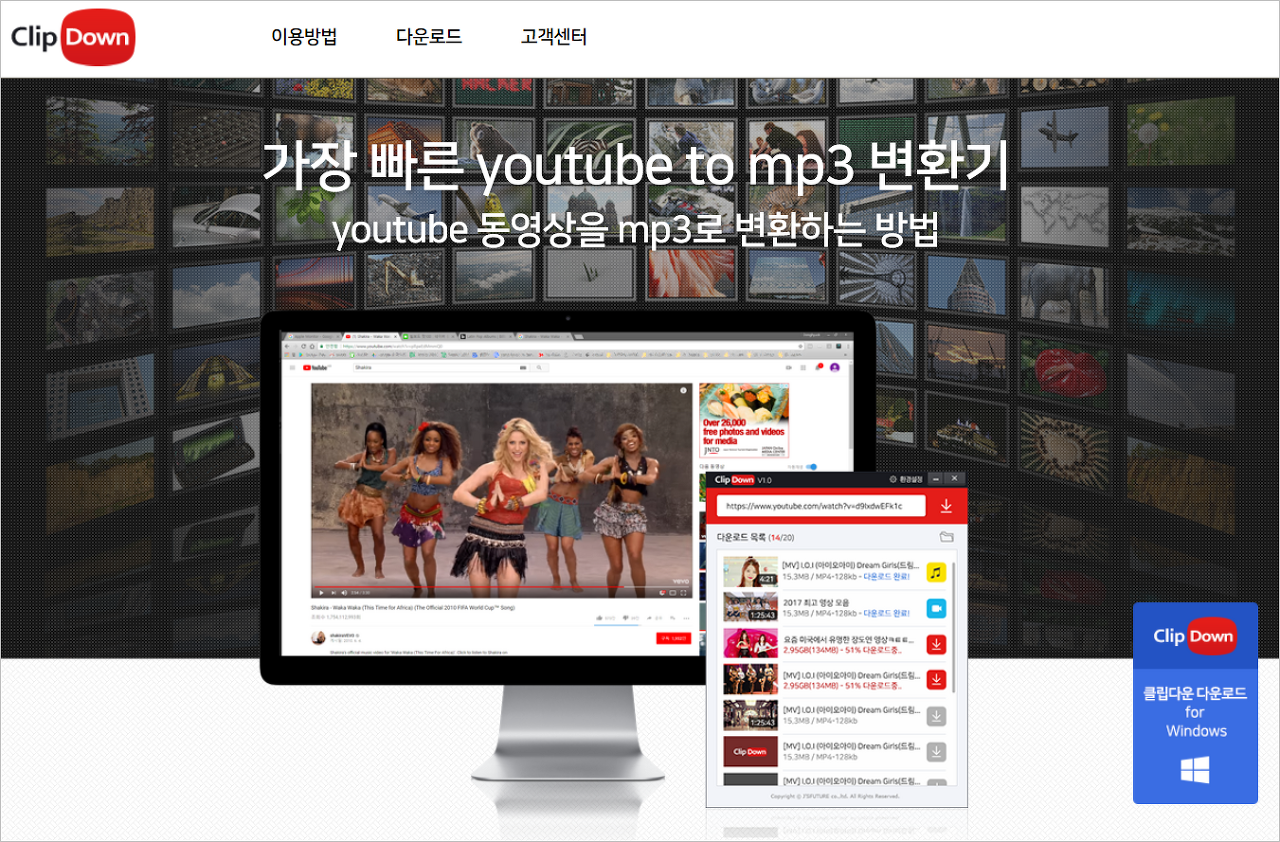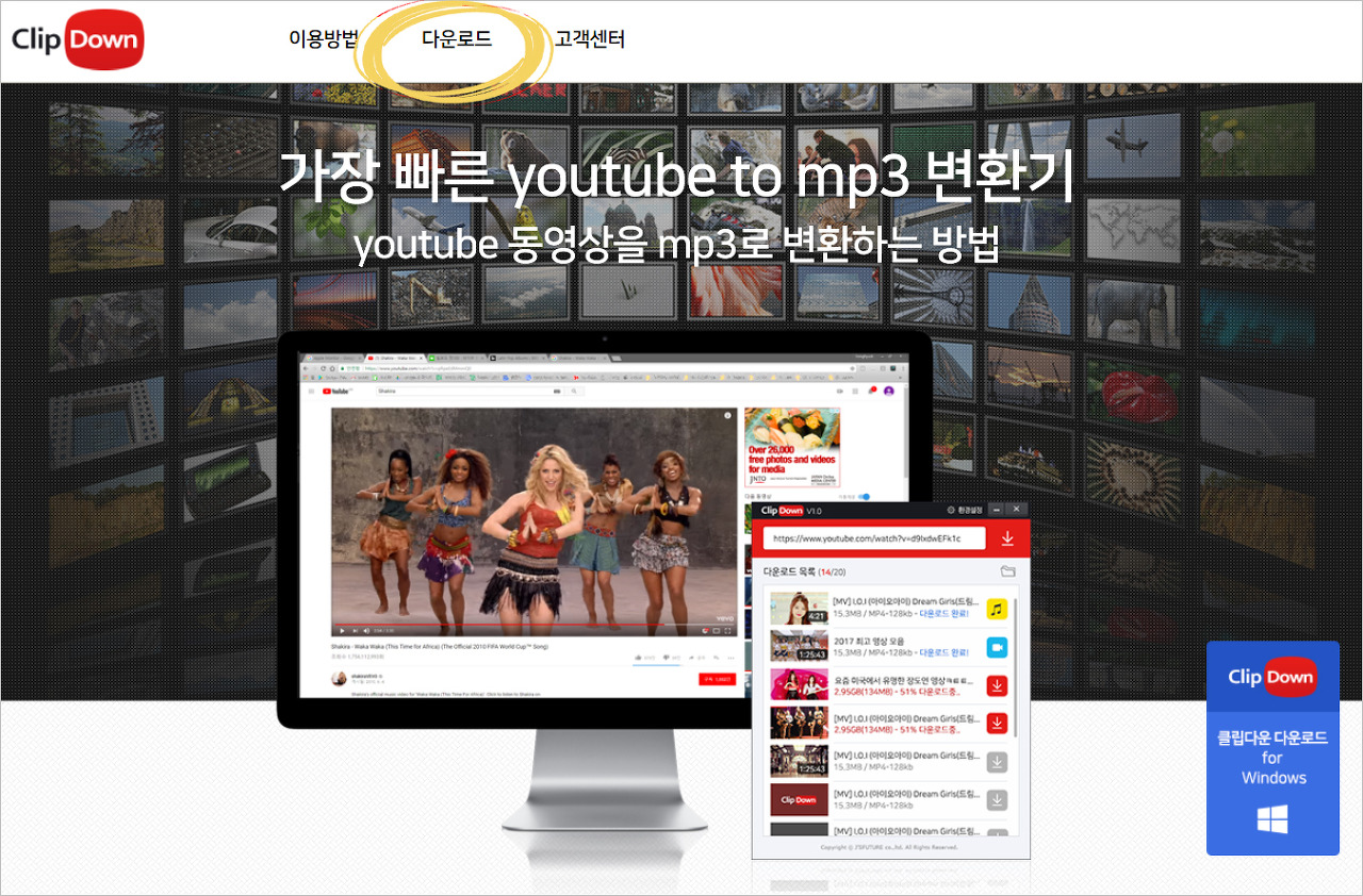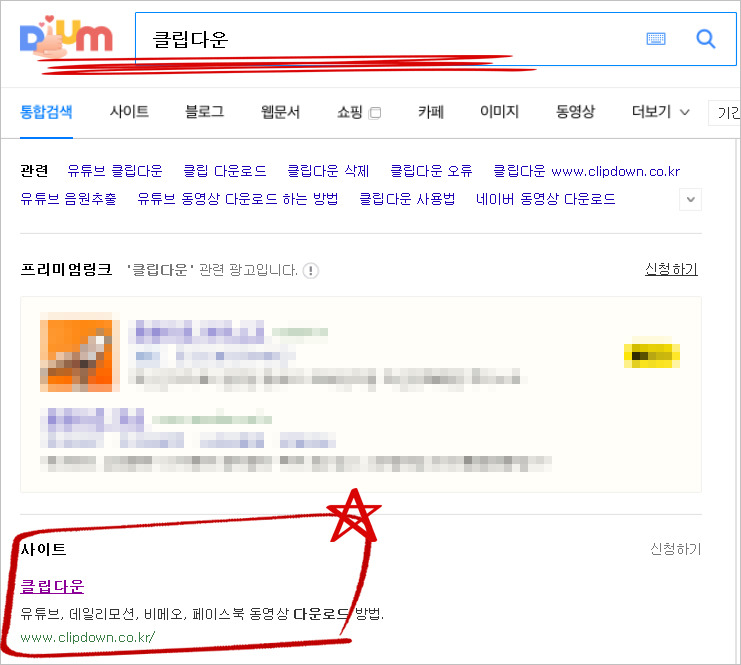 ① DAUM포털창에 [클립다운]이라고 검색하여 나오는 사이트에 들어갑니다. 클립다운은 유튜브 영상뿐만 아니라 페이스북 영상도 MP3로 만들어 줄 수 있는 프로그램이라 매우 유용합니다.