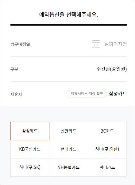 에버랜드는 삼성카드를 비롯, 총 10개의 제휴카드 할인이 가능합니다. 할인은 본인 1일 1회로 한정되어 있으며 신분증을 지참해야 받을 수 있습니다.