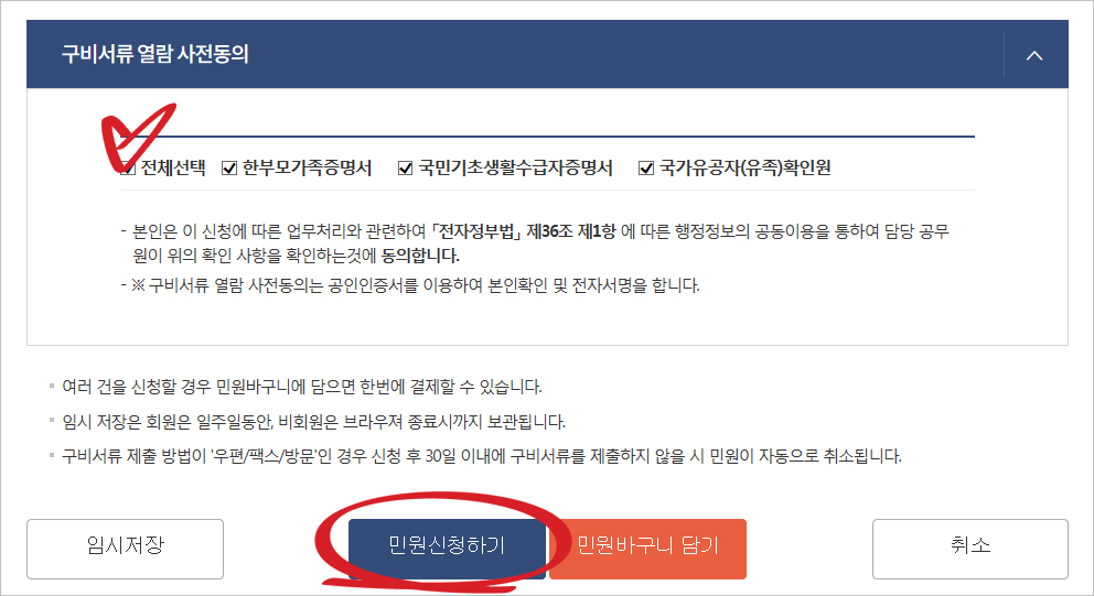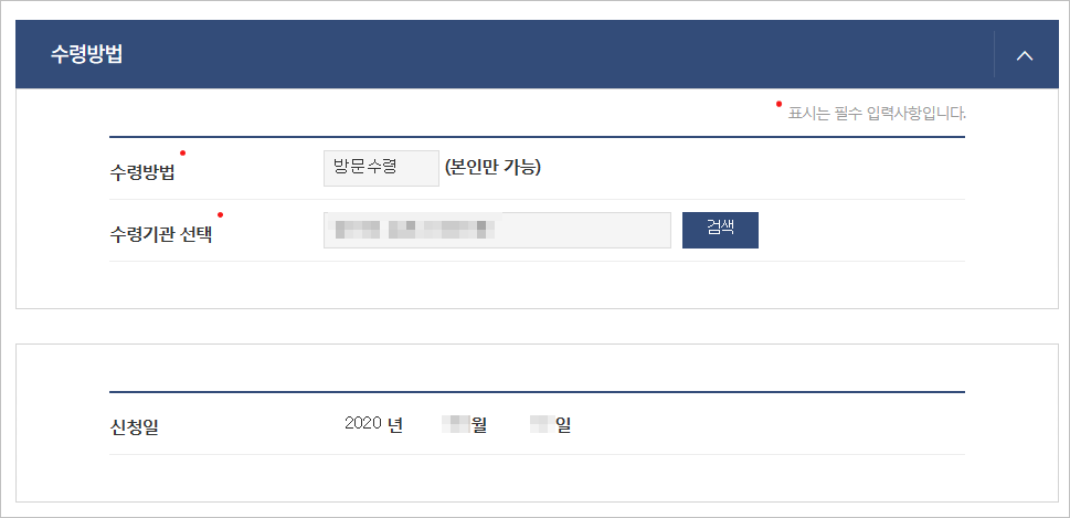 ⑧ 마지막으로 집과 가까운 곳으로 수령기간을 선택한 후, 구비서류 열람 사전동의를 하면 주민등록증 재발급 신청이 끝납니다. *방문 수령만 가능합니다.