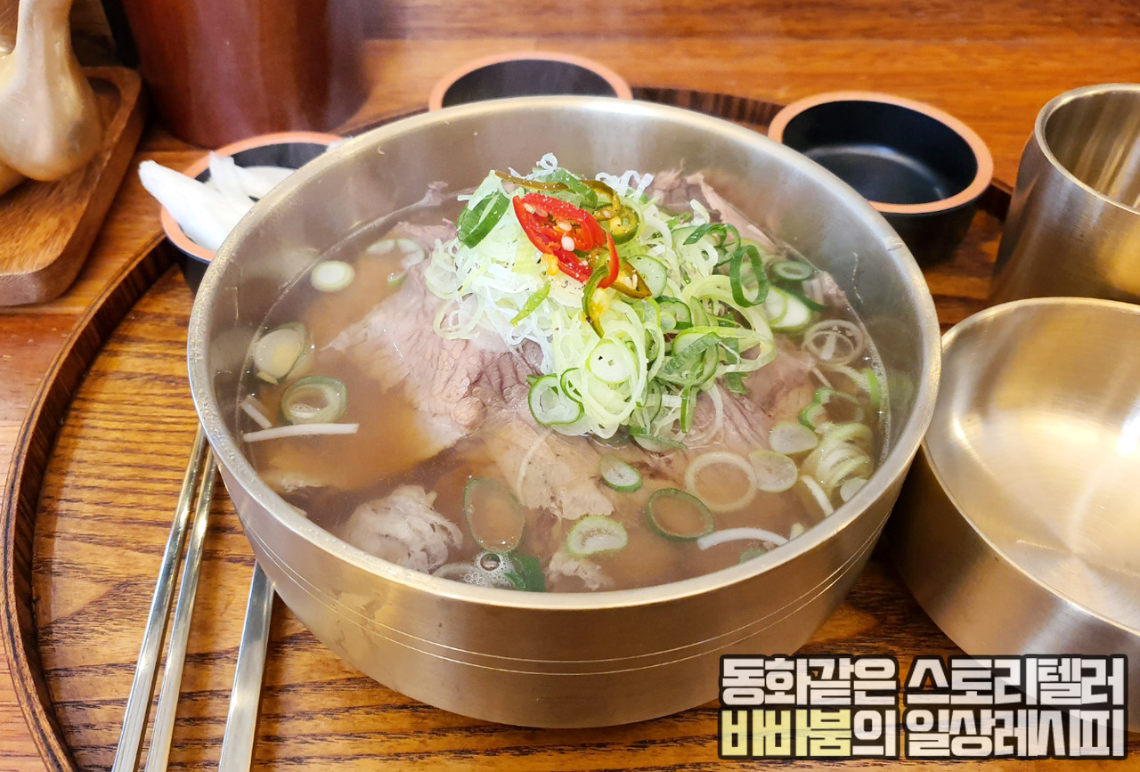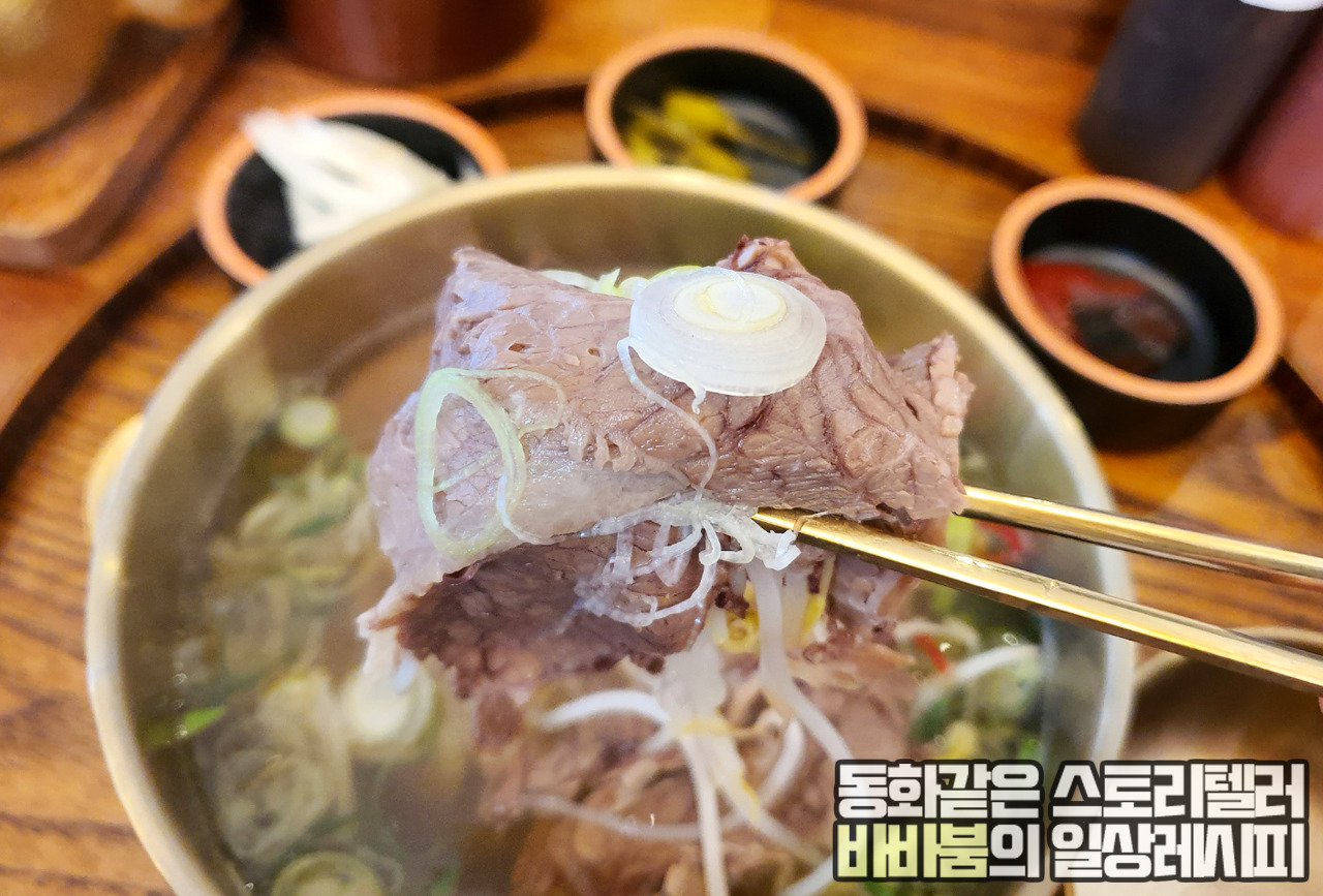 보통 먹는 소고기국밥이라기 보다는 쌀국수와 국밥의 퓨전 음식 정도로 생각하시면 더 이해하기 쉬울 것 같습니다. 국물도 실제 쌀국수 국물에 더 가깝다는 생각이 들어요. 리필도 무제한으로 해주시는 곳이라 정말 좋습니다.