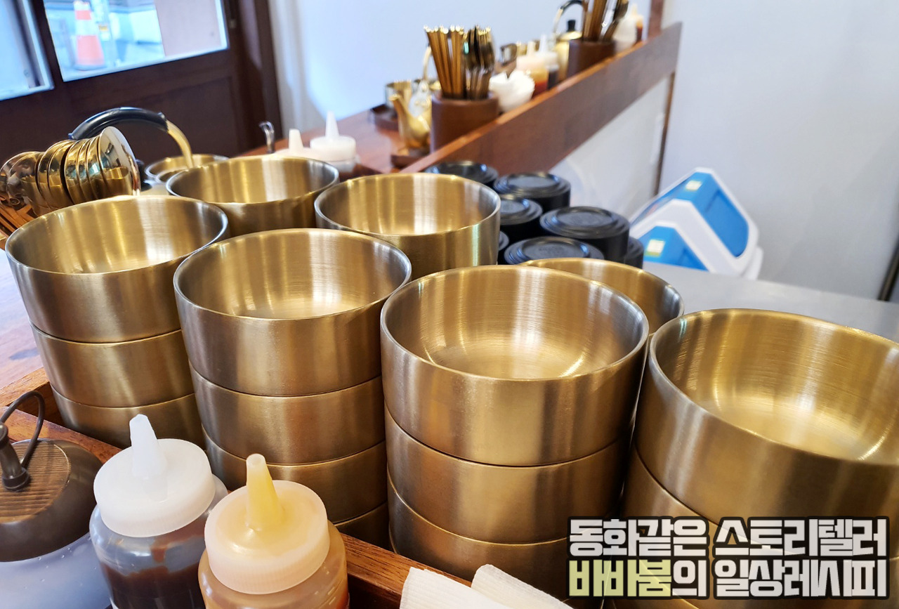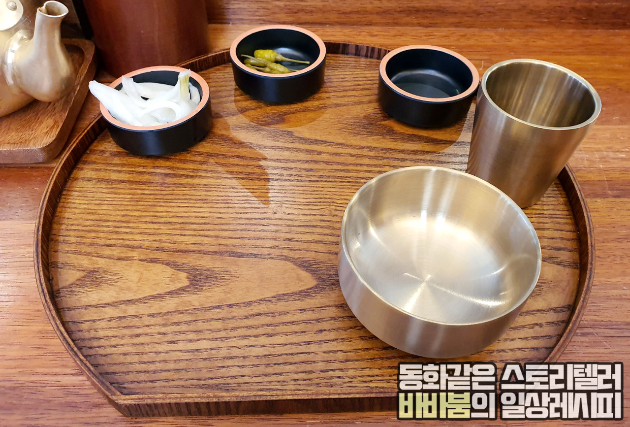그릇 전체를 방짜유기로 하여서 마치 대접을 받는다는 느낌이 나고, 좁은 실내지만 바 테이블로 구성하여 은근 매력도 있는 곳입니다.